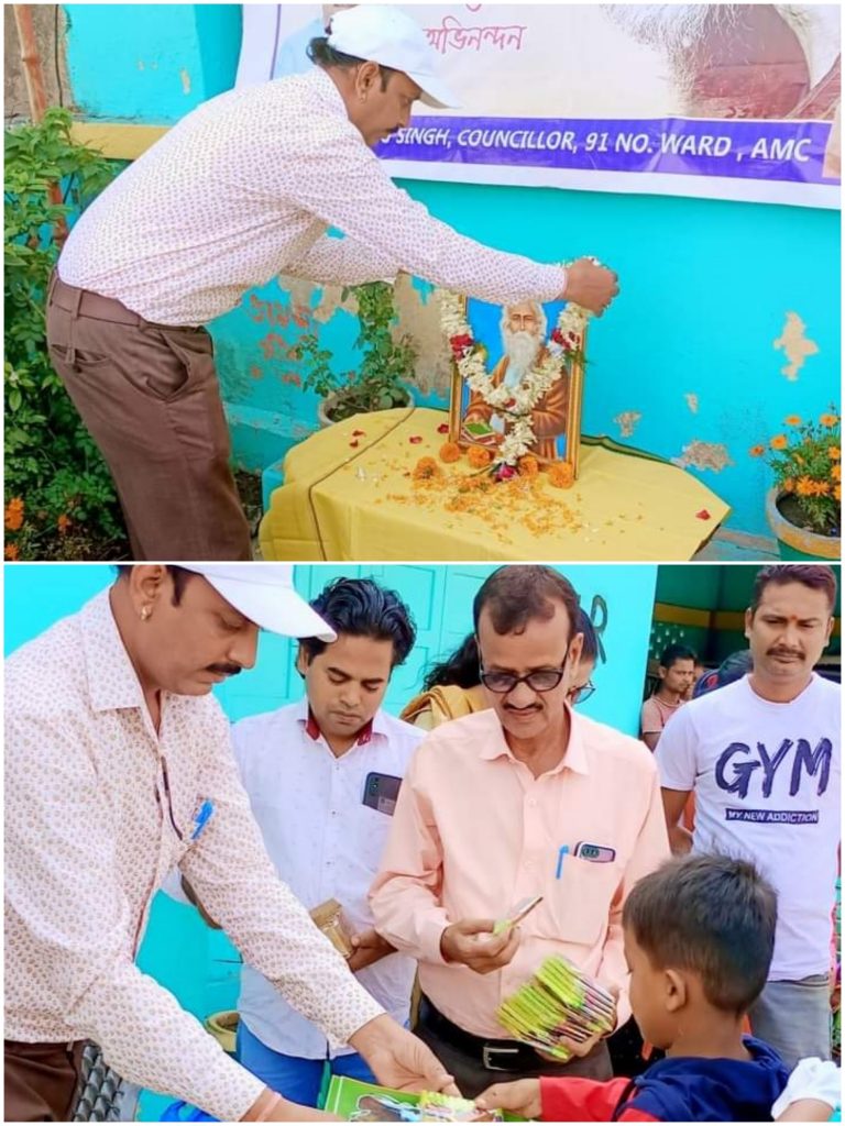 पार्षद राजू सिंह के नेतृत्व में मनाई गई कविगुरु रवींद्रनाथ टैगोर की जयंती: