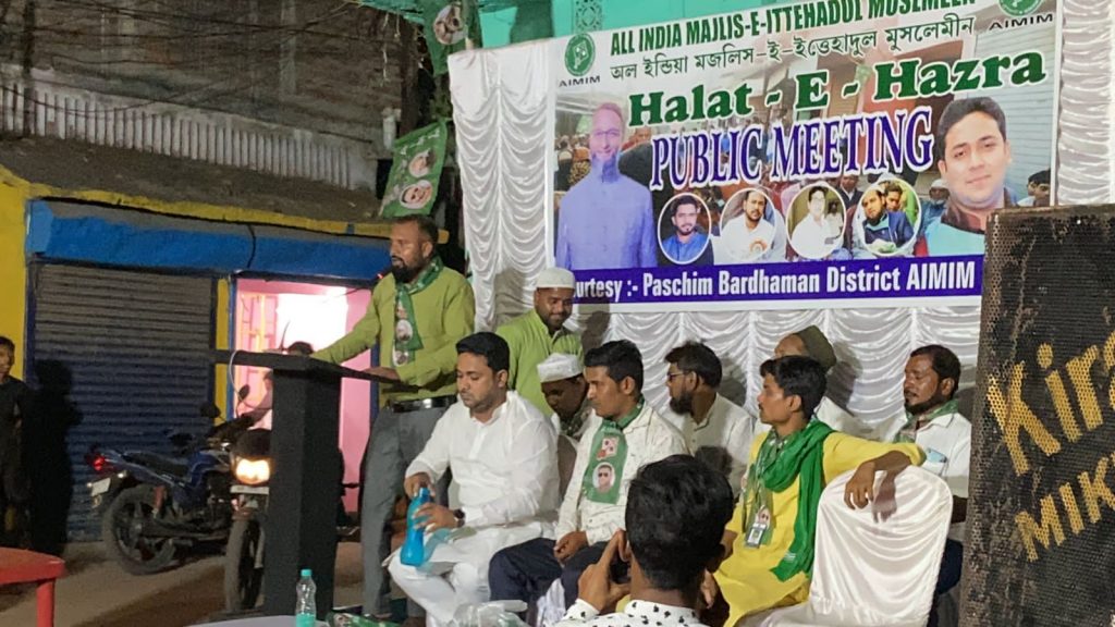 आसनसोल :पश्चिम बर्धमान जिला ए आई एम आई एम की तरफ से कल शाम आसनसोल के 24 नंबर वार्ड अंतर्गत रेलपार के कुरैशी मोहल्ला में हालात ए हाजरा नाम से एक पब्लिक मीटिंग का आयोजन किया गया। इस दौरान पश्चिम बर्धमान जिला ए आई एम आई एम अध्यक्ष दानिश अज़ीज़ जिला उपाध्यक्ष एजाज अहमद कानूनी सलाहकार अधिवक्ता मिराज़ बीरभूम से आए ए आई एम आई एम नेता मोइनुल आलम अनवर हुसैन सरवर इफ्तिखार नदीम अख़्तर शाहिद मंसूर शोहरत आलम सहित ए आई एम आई एम के तमाम कार्यकर्ता और स्थानीय लोग उपस्थित थे। इस दौरान आम जनता से जुड़े मुद्दों को लेकर बातचीत हुई जहां कुरैशी मोहल्ला की ब्रिज का मुद्दा उठाया गया। साथ ही पानी की किल्लत रेलपार इलाके में दिनो दिन बढ़ते ड्रग की समस्या अशिक्षा बेरोजगारी सहित और भी तमाम ज्वलंत मुद्दों पर चर्चा हुई। इस बारे में पश्चिम बर्धमान जिला ए आई एम आई एम की तरफ से कल शाम आसनसोल के 24 नंबर वार्ड अंतर्गत रेलपार के कुरैशी मोहल्ला में हालात ए हाजरा नाम से एक पब्लिक मीटिंग का आयोजन किया गया। इस दौरान पश्चिम बर्धमान जिला ए आई एम आई एम अध्यक्ष दानिश अज़ीज़ जिला उपाध्यक्ष एजाज अहमद कानूनी सलाहकार अधिवक्ता मिराज़ बीरभूम से आए ए आई एम आई एम नेता मोइनुल आलम अनवर हुसैन सरवर इफ्तिखार नदीम अख़्तर शाहिद मंसूर शोहरत आलम सहित ए आई एम आई एम के तमाम कार्यकर्ता और स्थानीय लोग उपस्थित थे। इस दौरान आम जनता से जुड़े मुद्दों को लेकर बातचीत हुई जहां कुरैशी मोहल्ला की ब्रिज का मुद्दा उठाया गया। साथ ही पानी की किल्लत रेलपार इलाके में दिनो दिन बढ़ते ड्रग की समस्या अशिक्षा बेरोजगारी सहित और भी तमाम ज्वलंत मुद्दों पर चर्चा हुई। इस बारे में दानिश अजीज ने बताया कि आज ऑल इंडिया मजलिस ए इत्तेहादुल मुस्लिमीन की तरफ से हालाते हाजरा नाम से एक कार्यक्रम का आयोजन किया गया जहां जनता से जुड़े मुद्दों पर चर्चा की गई समस्याओं के बारे में चर्चा हुई और कैसे उन समस्याओं से निपटा जाए इसके बारे में मतों का आदान प्रदान हुआ उन्होंने कहा कि आज जनसैलाब उमड़ा था और यह जनसैलाब ऑल इंडिया मजलिस ए इत्तेहादुल मुस्लिमीन के राष्ट्रीय नेता असदुद्दीन ओवैसी के हाथों को मजबूत करने के लिए उमड़ा था लोगों को उम्मीद है कि असदुद्दीन ओवैसी के नेतृत्व में ऑल इंडिया मजलिस ए इत्तेहादुल मुस्लिमीन आने वाले समय में लोगों की समस्याओं को दूर करने में सफल होगा उन्होंने आशा जताई कि आज के इस कार्यक्रम का जो निचोड़ निकला है वह प्रशासन के आला अधिकारियों तक पहुंचाया जाएगा और प्रशासन इन समस्याओं के जल्द से जल्द समाधान के लिए कोई सकारात्मक कदम उठाएगा दानिश अजीज ने बताया कि आज ऑल इंडिया मजलिस ए इत्तेहादुल मुस्लिमीन की तरफ से हालाते हाजरा नाम से एक कार्यक्रम का आयोजन किया